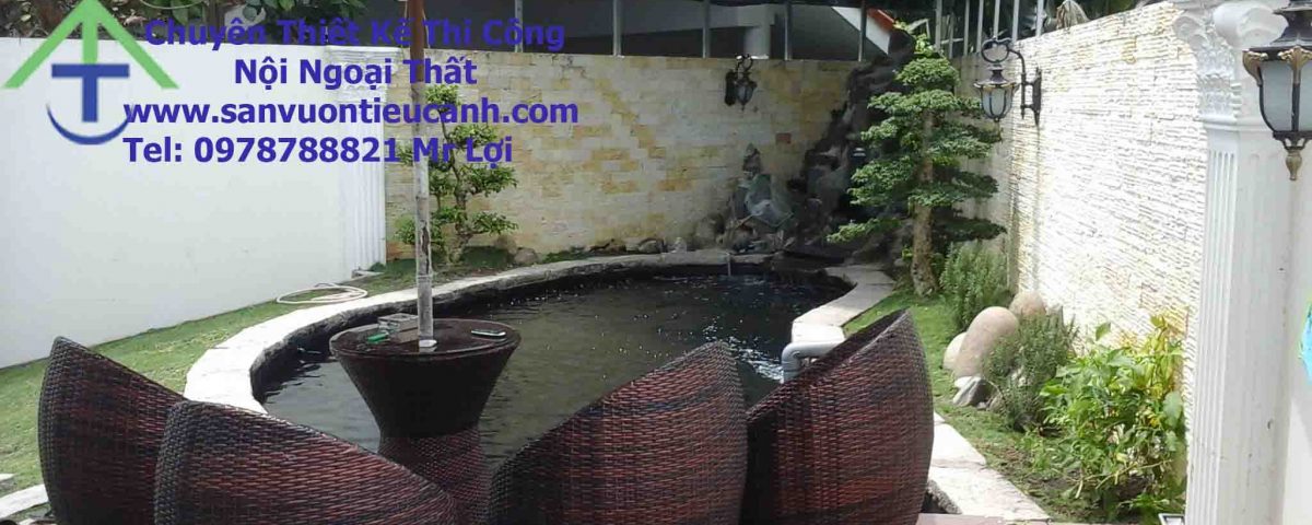 Sân vườn không chỉ ngập bóng cây mà còn có sự hiện hữu của yếu tố nước sẽ đem lại cảm giác trong lành, thanh sạch, khoan khoái.